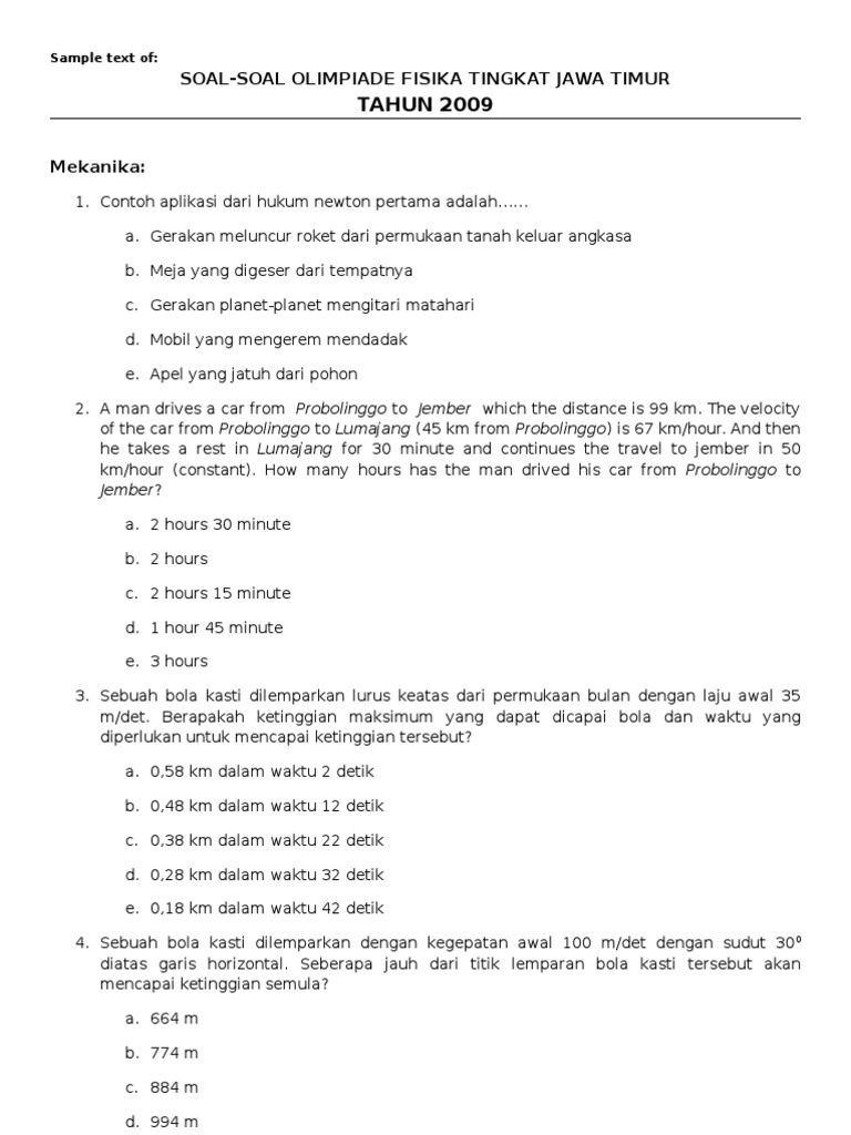 Sedangkan komponen kecepatan dalam arah y adalah ⃑v y (t) seperti ditunjukkan dalam grafik dibawah. Silahkan download soal dan solusi olimpiade fisika sma. Soal olimpiade fisika sma ini adalah bahan dasar untuk melaksanakan tahap ujian nasional berdasarkan kegiatan dalam kompetisi nasional dan internasional sehingga. Buku siswa x mia semester 2. Contoh soal dan pembahasan osn guru sd;
